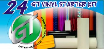 The 24" GT Vinyl Starter Kit for Vinyl Graphics is a money-saving package that includes a nice assortment of high quality vinyl and transfer tape. Seven 24" X 10yd rolls of our most popular vinyl; GT glossy Intermediate Vinyl. GT Intermediate Series Vinyl is rated for a minimum outdoor life of five years.