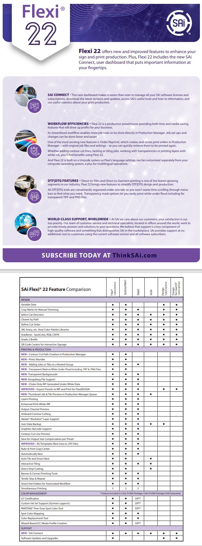 Flexi 22 offers new and improved features to enhance your sign and print production. Plus, Flexi 22 includes the new SAi Connect, user dashboard that puts important information at your fingertips.