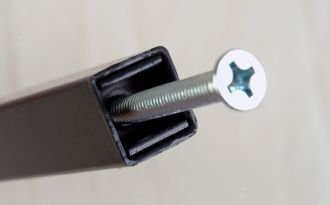 Our vinyl racks are unique because we pierce the square tubing and insert the loops into the tubing for extra support - then we weld the loops in place. Also, the cross bar is pierced so that the screws lay flush.
