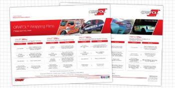 8.5" x 11" Graphic Products Flyer for ORAFOL Wrapping Films- 3951RA, 3751RA, 3551RA, 970RA, 5650RA. Contains Feature and Benefit information for each product.