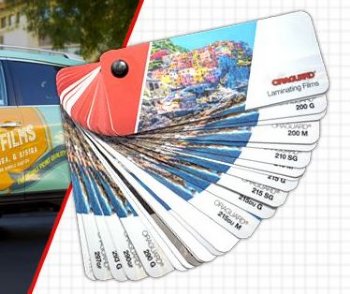 Fan Deck Containing Removable swatches of all laminated prints including the new ORAGUARD® 236 PVC-FREE Laminating Film.