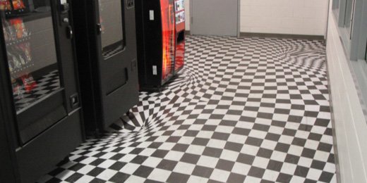Short-to medium-term interior floor graphics on smooth, non porous, sealed flooring surfaces