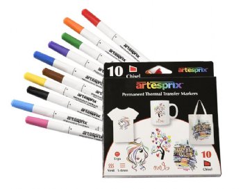 Permanent Thermal Transfer Markers, the original patent-pending sublimation markers, were launched by Artesprix in 2018. Now referred to as the Original Markers, this set of ten sublimation markers is the only package that includes a black marker along with all the colors of the rainbow. And the chisel nibs allow you to draw thin lines with the tip of the nib and fill in open spaces with the wide edge.