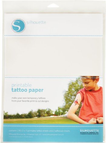 Silhouette temporary tattoos apply easily with water, generally last a day or two, and can be removed with a washcloth and warm water. Simply print designs onto this unique paper with an inkjet printer. Then, with the included adhesive, use the Silhouette's Print & Cut feature to cut around each printed design.