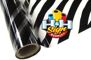 The image shows a piece of textile foil with a zebra design. The background of the foil is clear, and it has black stripes in a zebra pattern spread throughout the foil.