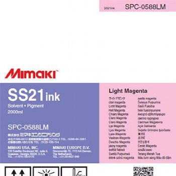Light Magenta Mimaki SS21 is a fast drying solvent ink with superior adhesion to media, paired with a brilliant color reproduction for high speed printing. Mimaki SS21 ink has can be used for printing on various types of media with high scratch resistance characteristics. Easy-to-use 2000ml pack allows a rapid ink exchange with no mess.